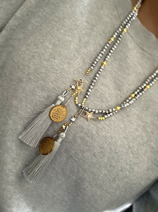 Tiger stones with heart charm