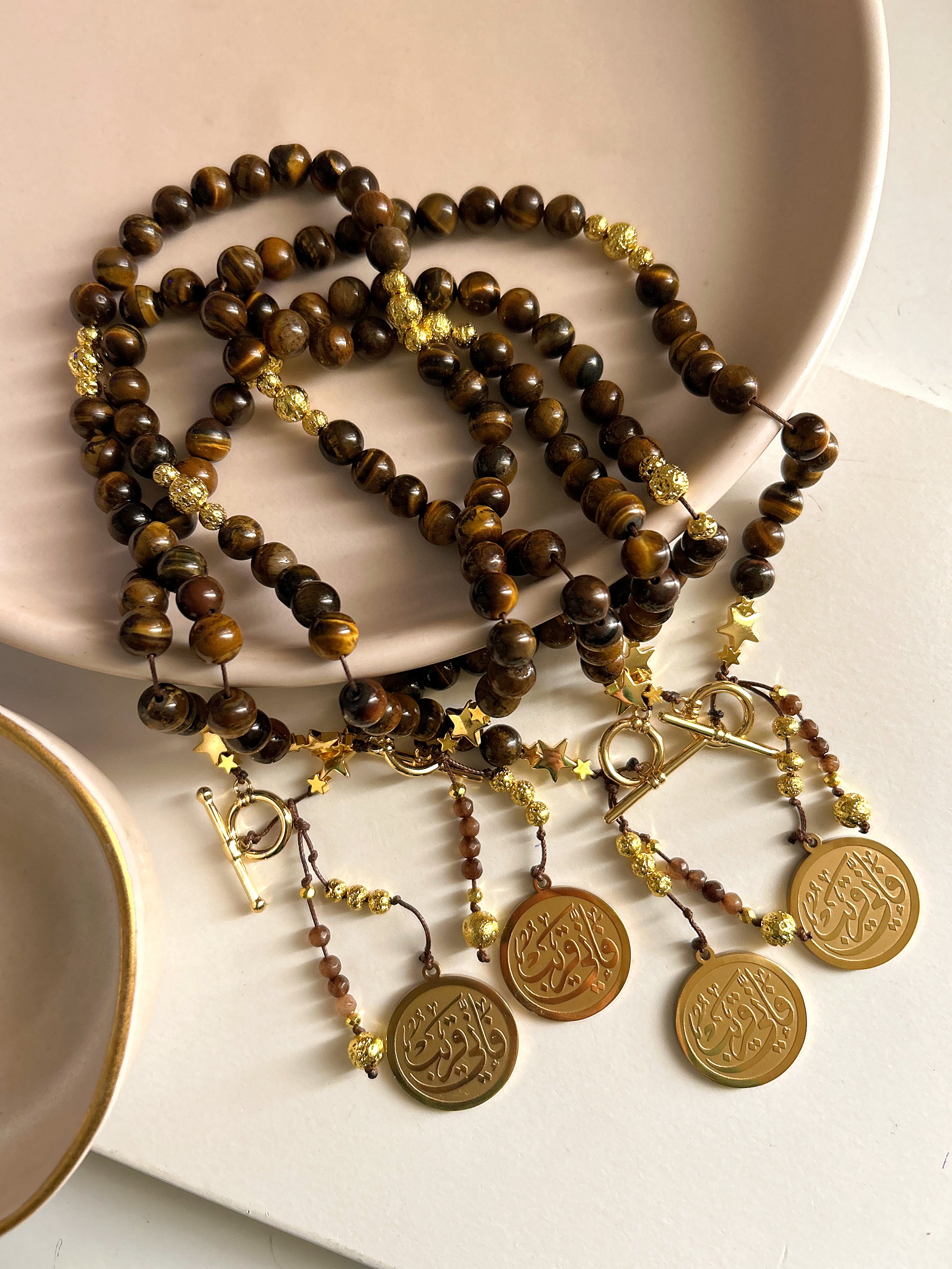 Tiger stones with heart charm