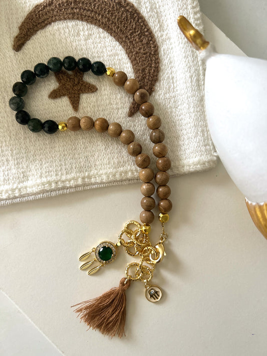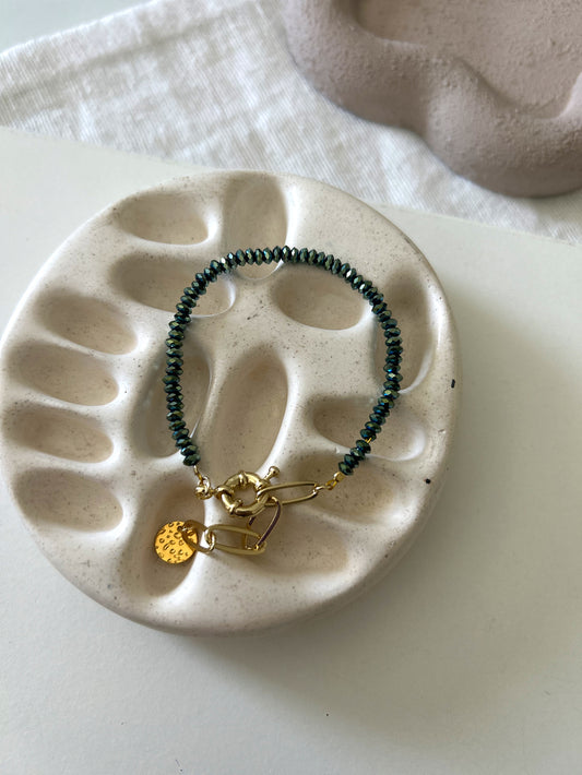 Green stone bracelet (golden charm)