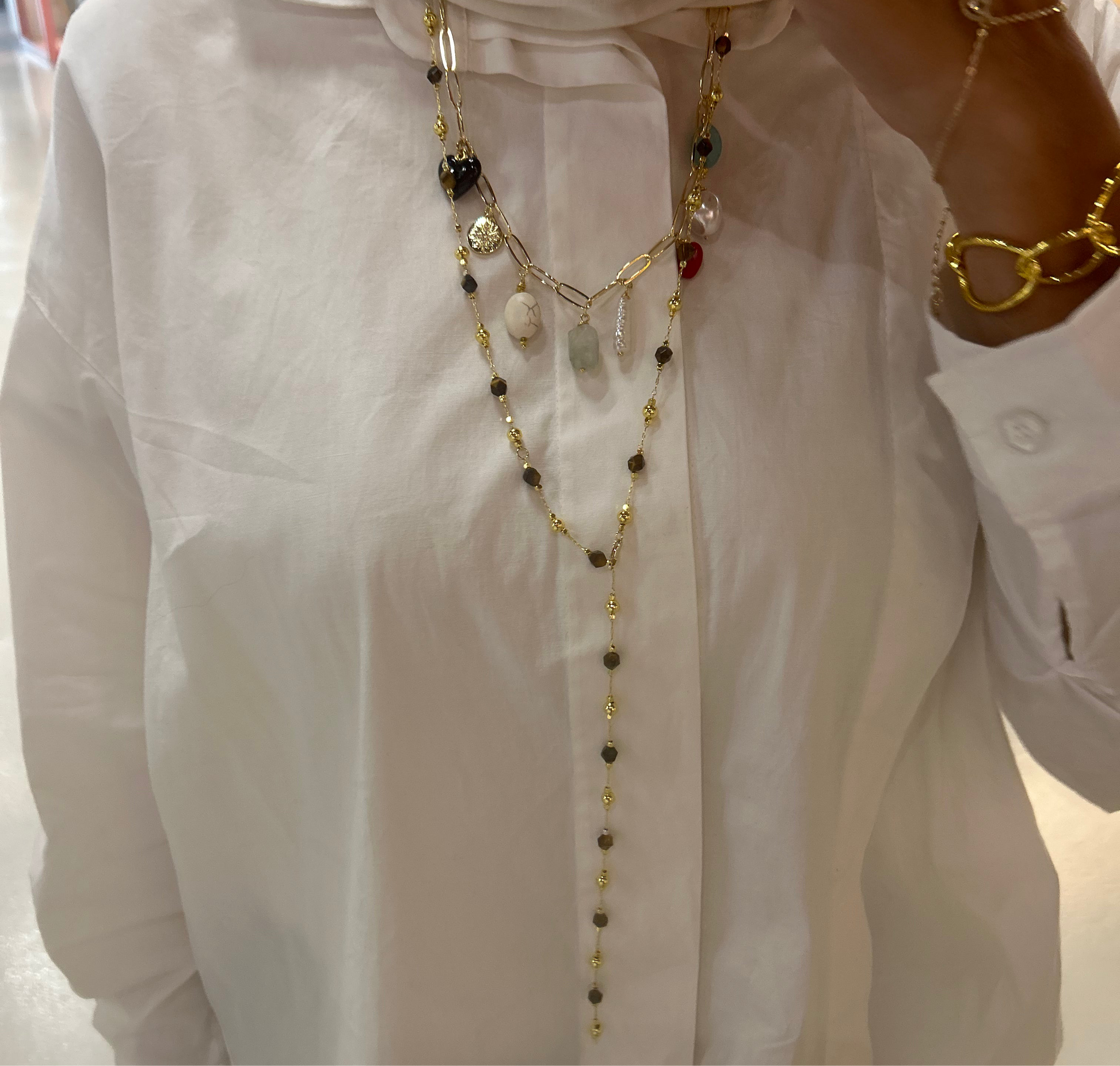 Long necklace with brown stones